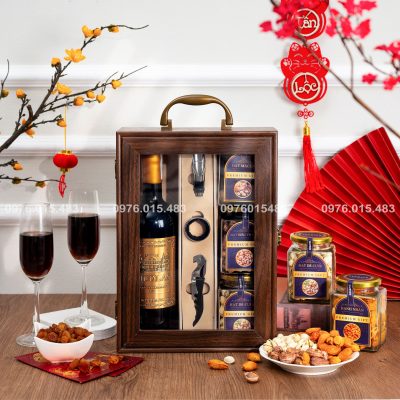 “Thuận Buồm Xuôi Gió: Hộp Quà Tết Nghệ Thuật với Rượu Vang Nicolas và Hạt Đặc Sản”