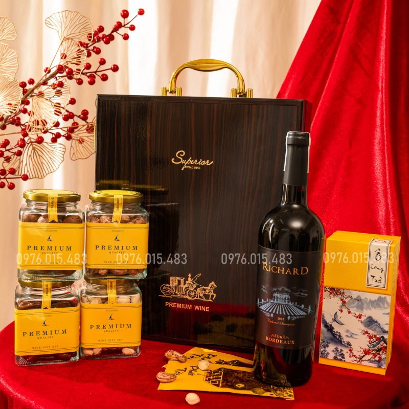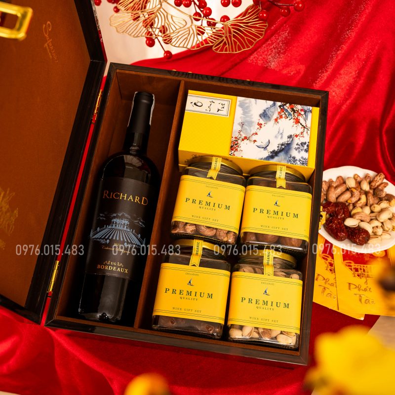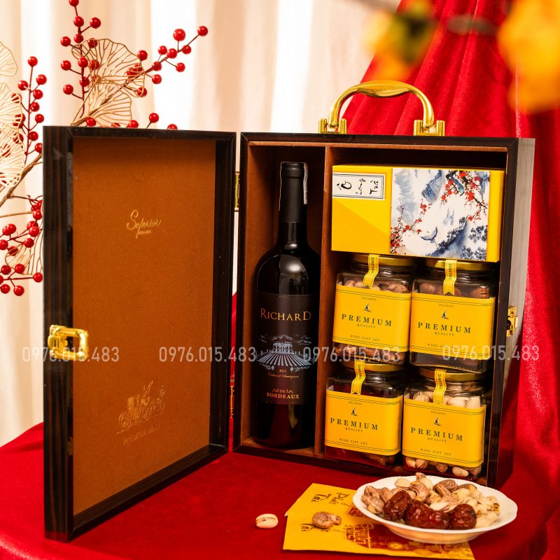 Sự kết hợp giữa rượu vang Pháp Richard Bordeaux và trà Ô Long truyền thống tạo nên một món quà hòa quyện giữa văn hóa châu Âu và Á Đông – hiện đại mà vẫn đậm hồn Tết Việt.